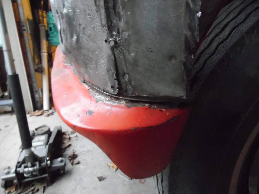 This entire area was covered over with tin with pop rivets. All the damaged and rusting metal was just covered over. It had almost an inch of Bondo.
