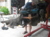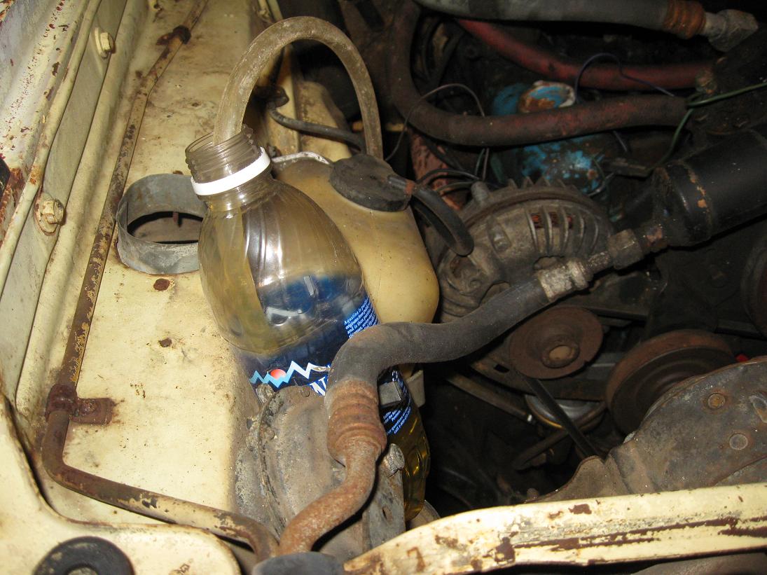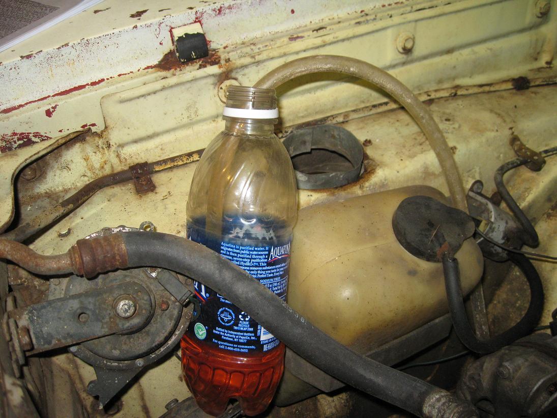 Gas tank has now been removed. It was full of rust sludge, glad it wasn't hooked up to engine. The current gas tank was a water bottle with a hose stuck in it. Works good, not very good range though. New gas tank should be here any day.