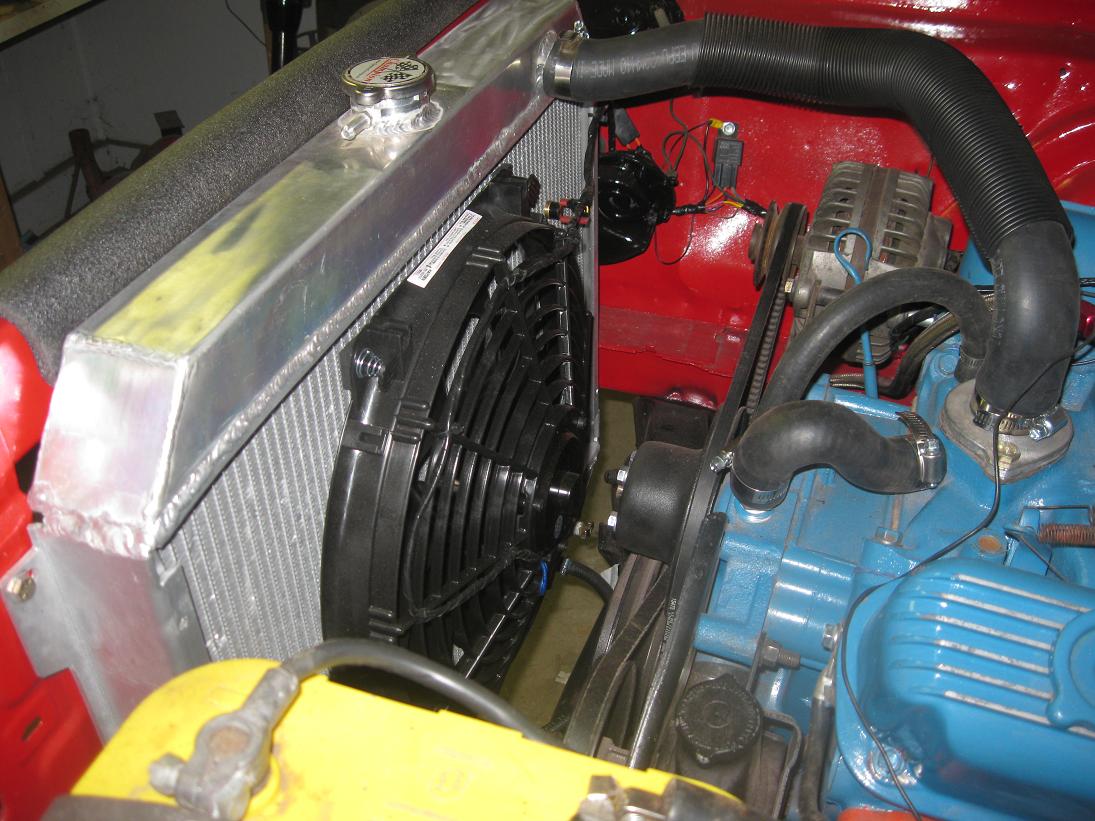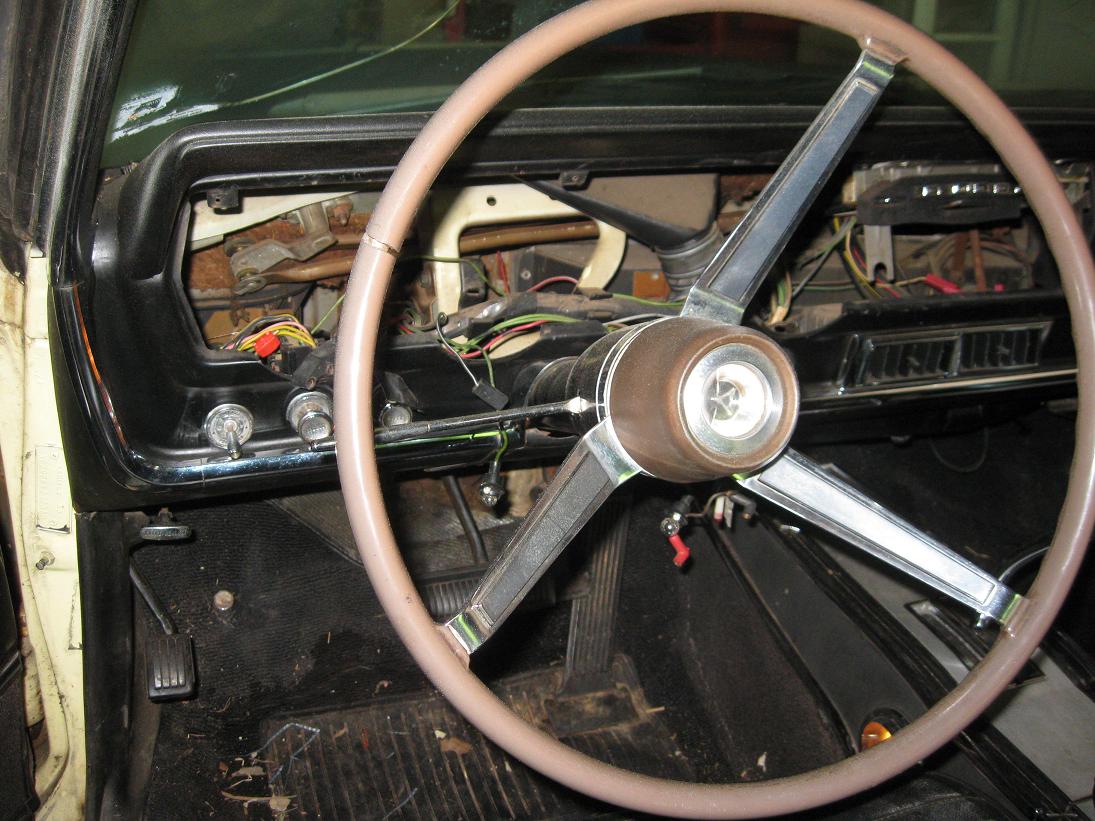 Temporary engine controls are installed upper right. This is to be able to start her and drive her on the tow truck to move it to the paint shop. I have installed a temp gauge too.