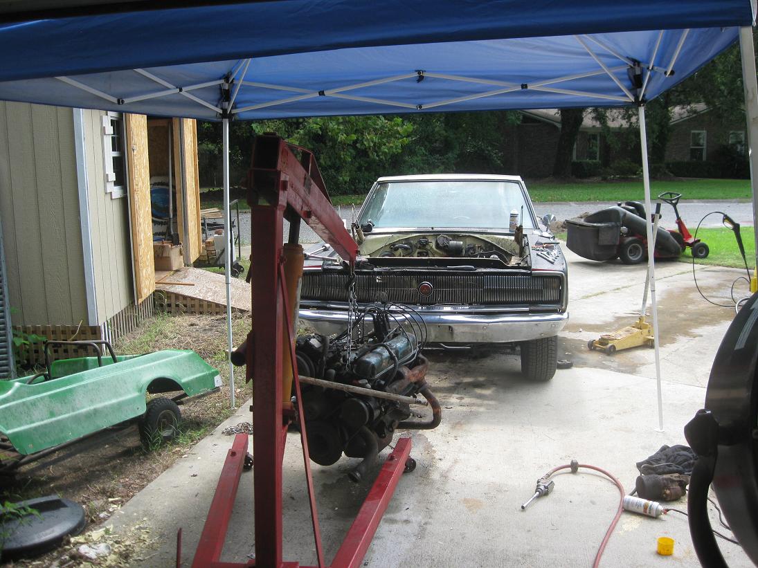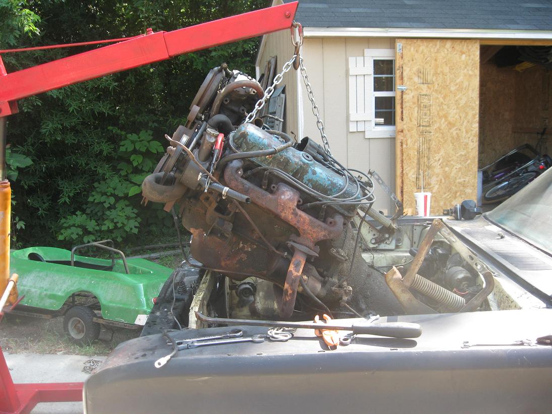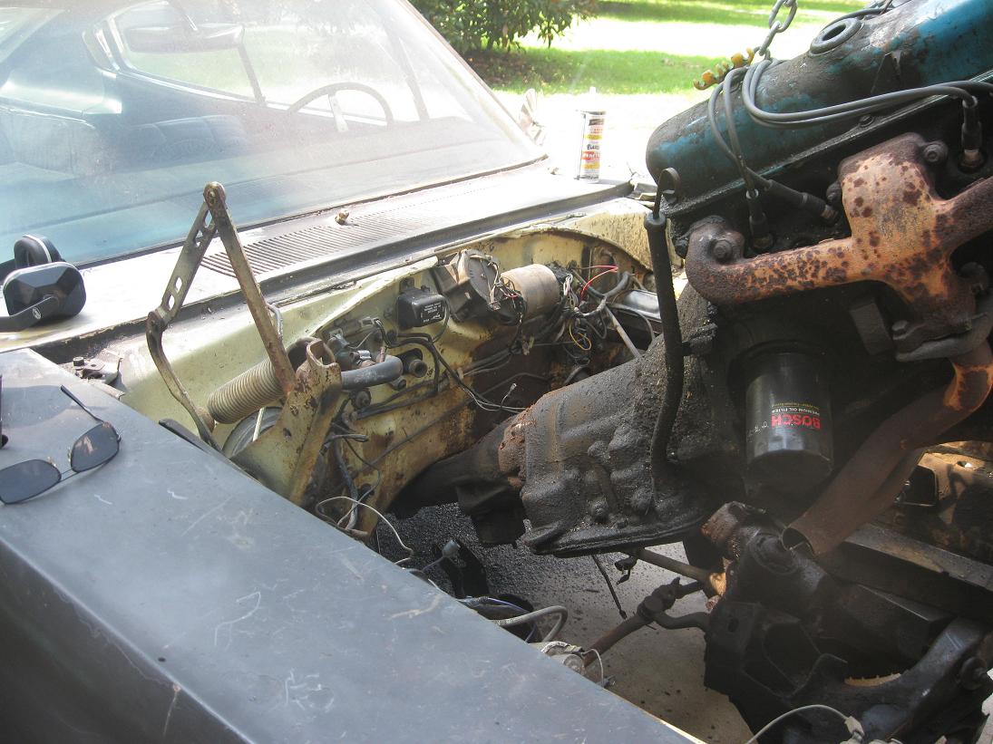 Got the money for the tranny rebuild, started to pull the engine.