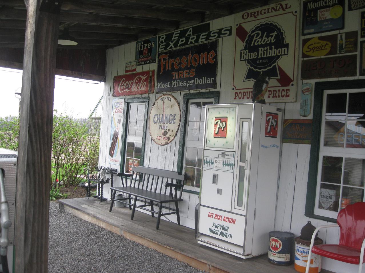 A service station replica in a back yard is what attracted me to this place. Me being completely car crazy I had to stop and ask about it.