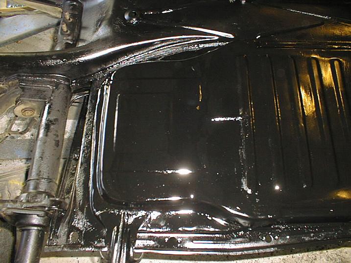 After sanding all the floor pan areas off, it was painted to keep rust from getting worse. |