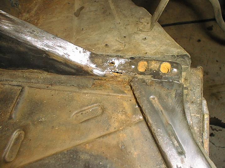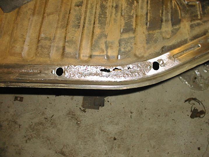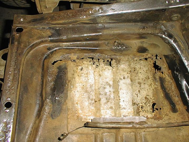 | The rear floor pans were rusted through on both sides. |