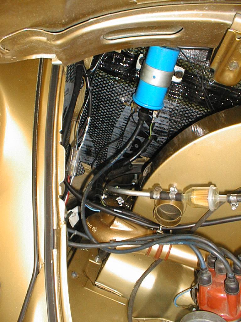 Fuel line from chassis to fuel filter is metal tubing. Coil has been relocated to fire wall. New distributor as been added since this photo too. |
