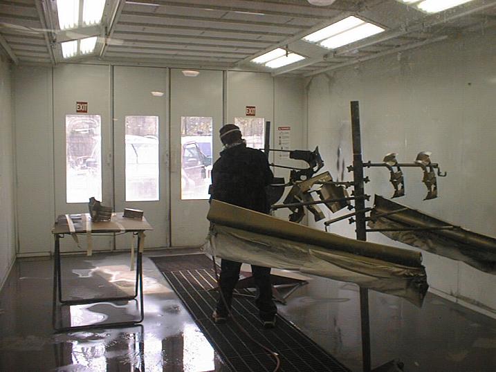 | Shroud being painted in paint booth. |